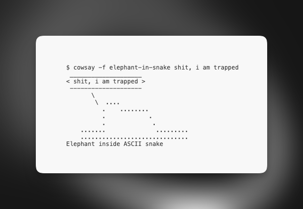 I also encourage everyone to read more about the cowsay program: https://en.wikipedia.org/wiki/Cowsay