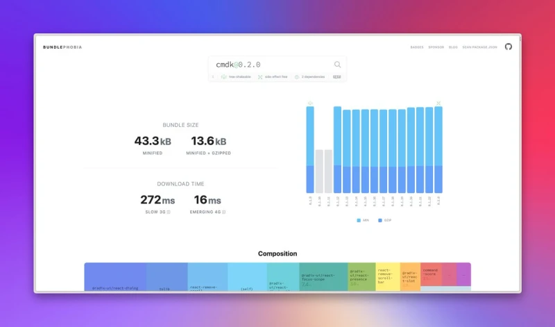Helps you analyze the bundle size of npm packages and even shows how long it'll take to load with different connection speeds.